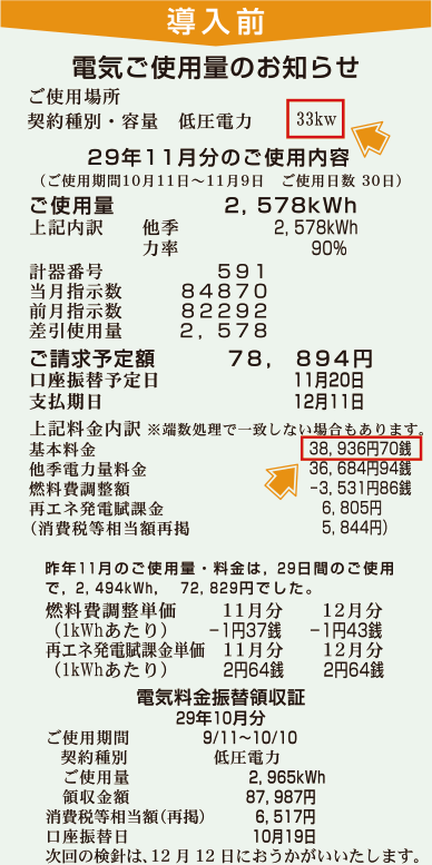 | 支店名 | 設置日 | 導入前 基本料金/契約数値 |